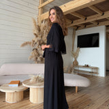 Black long boudoir robe with lace