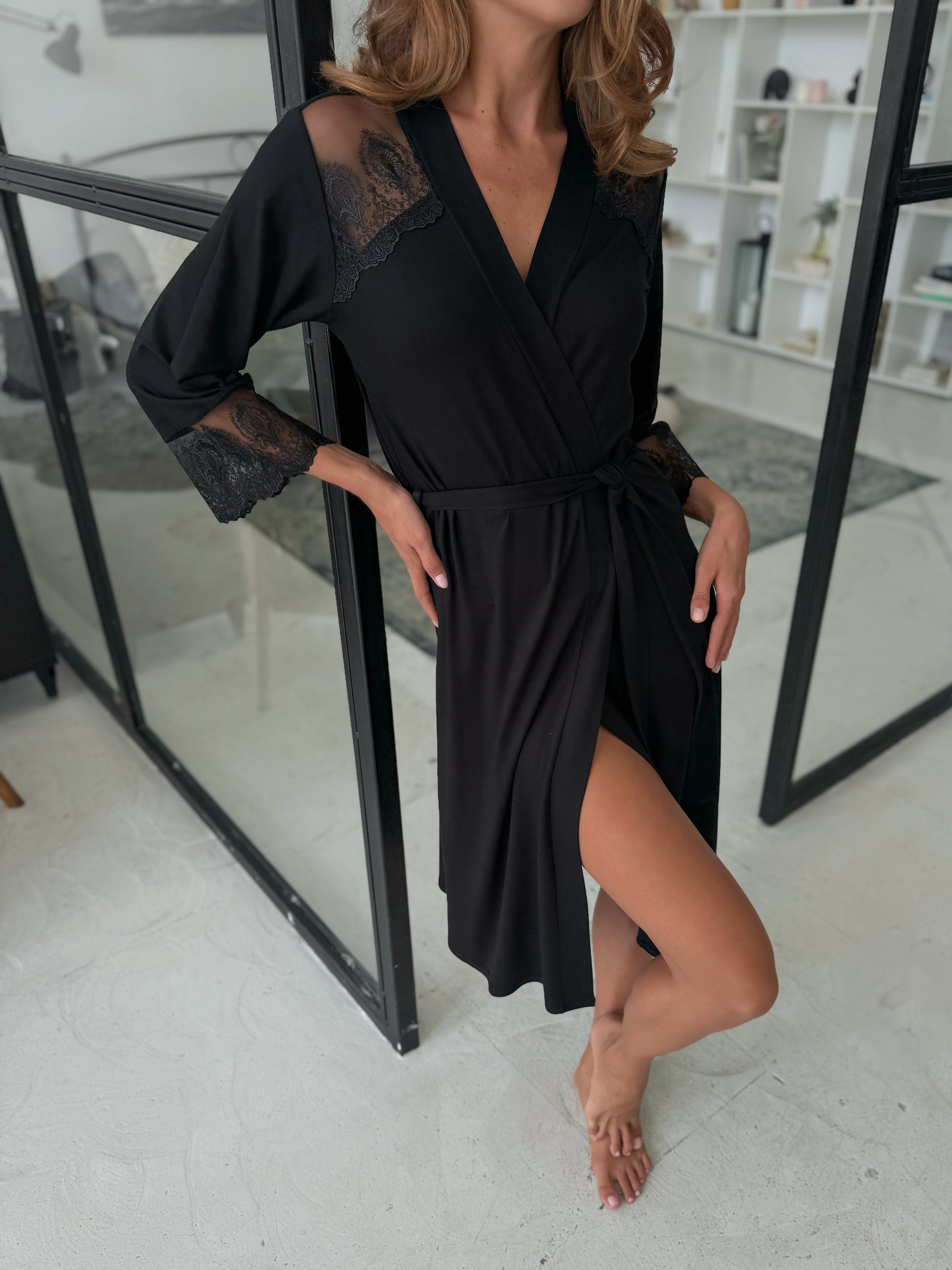 Robe and nightgown black